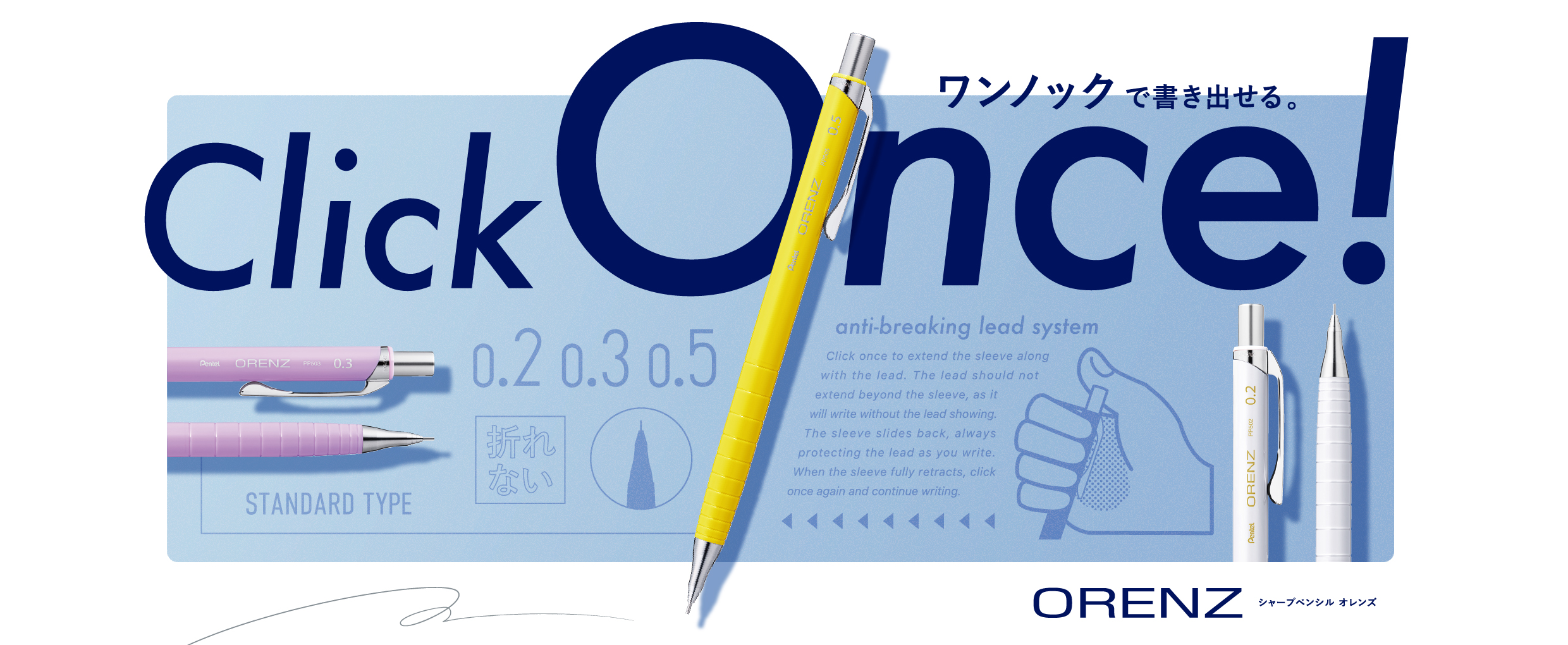 0.5mm、0.3mmに加えて0.2mmのラインナップがあるのも魅力的です。