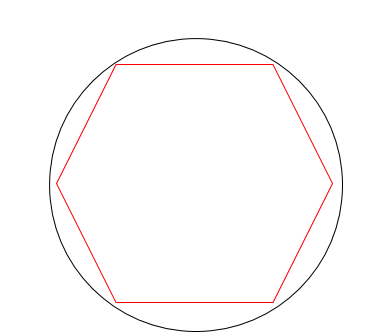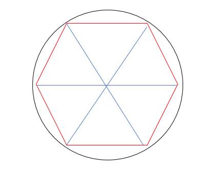 また、図より「円周」>「正六角形の周の長さ」であることは自明です。