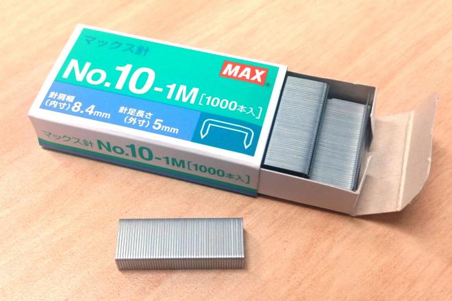 1度に綴じられる枚数は最大12枚(商品によって異なります)と、一般的なステープラーより少なめですが、重ねたときにかさばらない、針を補充しなくていいのはメリットです。